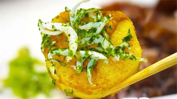 - フライパンにサラダ油を入れ、長芋を入れて焼き、塩、白出汁、カレー粉、を入れるて炒める