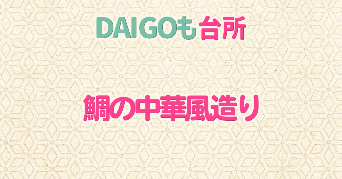 2025年4月29日のDAIGOも台所はS・I・O~先生のイチオシ「鯛の中華風造り」のレシピをご紹介します。