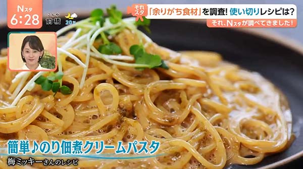 2025年8月25日、Nスタ・それスタの「のり佃煮クリームパスタ」のレシピをご紹介!