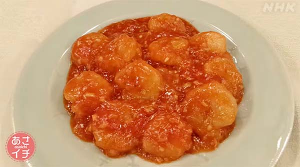 2025年8月27日、NHK「あさイチ」で紹介された、「冷凍むきエビでエビチリ」の作り方。