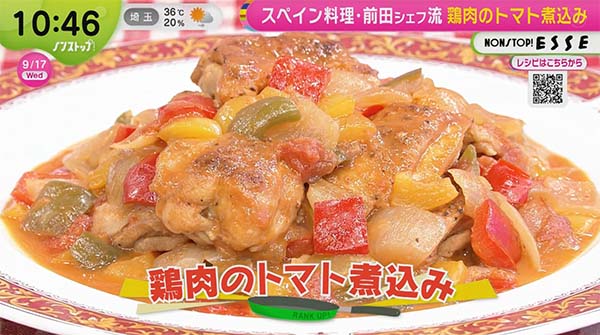2025年9月17日、「ノンストップ」で紹介された「前田流・鶏肉のトマト煮込み」のレシピ。
