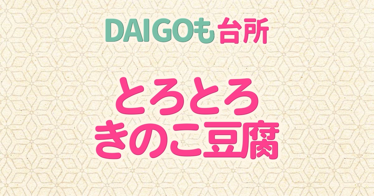 2025年10月2日のDAIGOも台所の「とろとろきのこ豆腐・豆腐バーグのXO醤ソース・厚揚げとナスのしょうが焼き」の中から「とろとろきのこ豆腐」の作り方をご紹介します。
