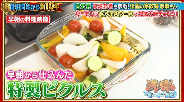 2025年10月3日放送の沸騰ワード10で家政婦の志麻さんの「志麻さん特製ピクルスのレシピ」をご紹介。