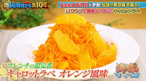 2025年10月3日放送の沸騰ワード10で家政婦の志麻さんの「キャロットラペ・オレンジ風味のレシピ」をご紹介。