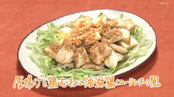 2025年10月6日放送の、きょうの料理「厚揚げと鶏むねの油淋鶏(ユーリンチー)風」のレシピをご紹介。
