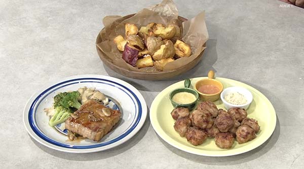 教えてくれたのは、「厚揚げの肉巻きステーキ・豚こまミートボール・2種のいもの手割りフライ」の3品。