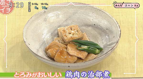 2025年10月8日、NHK「あさイチ」で紹介された、「鶏肉の治部煮」の作り方。