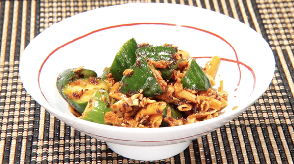 2025年10月7日、ヒルナンデスで紹介された「きゅうりの柿ピーラー油和え」の作り方 。