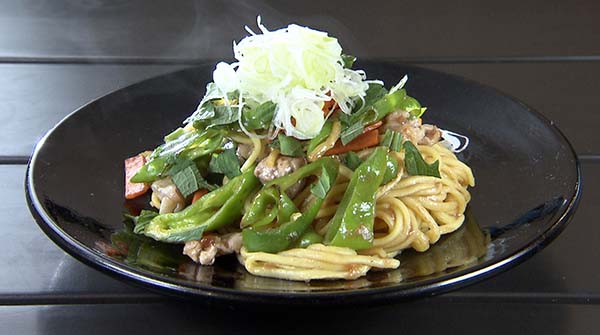 梅干しを叩いて作った特製のたれでさっぱりとしたいつもと違う焼きそばが味わえます。