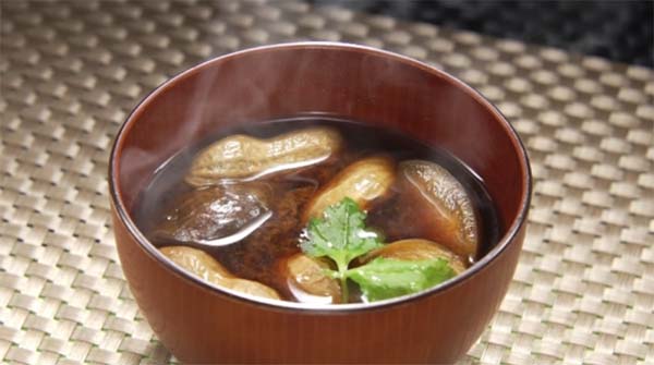 - ナスに火が通ったら火を弱めて味噌を溶く。椀に盛り、三つ葉をのせれば完成!