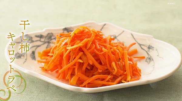 2025年10月13日放送のきょうの料理「干し柿キャロットラペ」の作り方をご紹介。