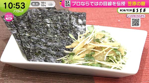 2025年10月21日、「ノンストップ」で紹介された「カイワレのたくわん巻き」のレシピ。