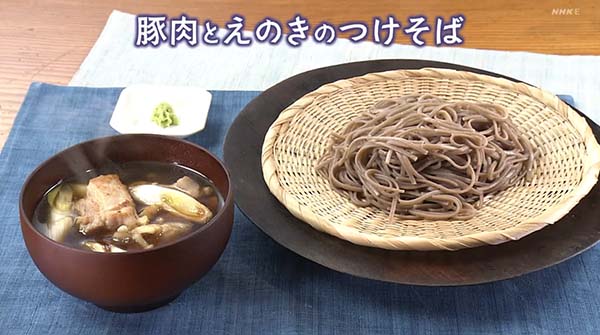 2025年10月22日放送のきょうの料理「豚肉とえのきのつけそば」の作り方。