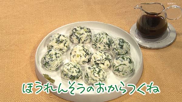 2025年10月28日放送のきょうの料理「ほうれんそうのおからつくね」の作り方。