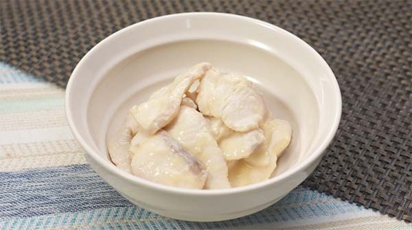 - サメは身をひと口大に切り、沸かした湯に入れて火を通す。