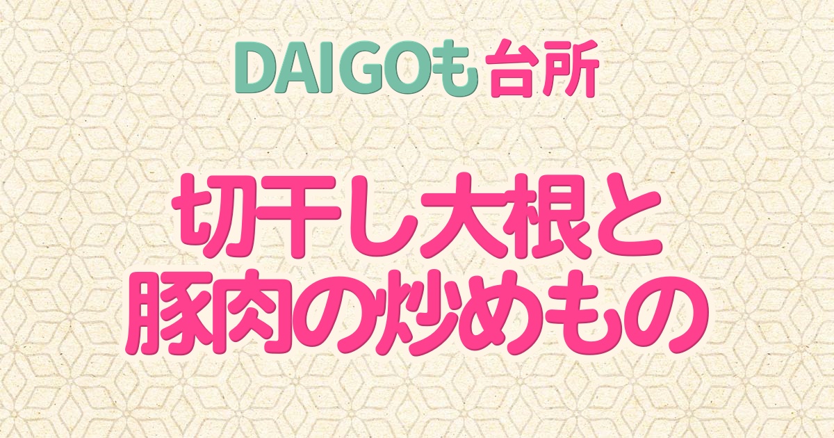 2025年11月5日のDAIGOも台所の「切り干し大根のきんぴら・切り干し大根とささみのサラダ・切干し大根と豚肉の炒めもの」の中から「切干し大根と豚肉の炒めもの」の作り方をご紹介します。