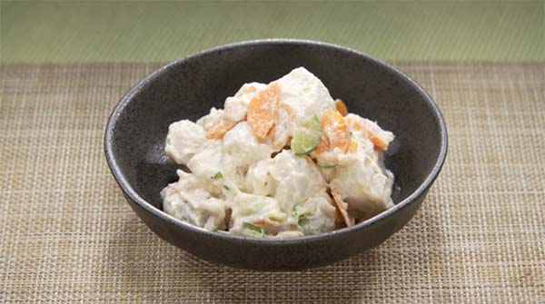 - 里芋、きゅうり、にんじん、ツナ(オイルごと)、マヨネーズ、白だし大さじ1、あら挽きコショウを和えれば完成!