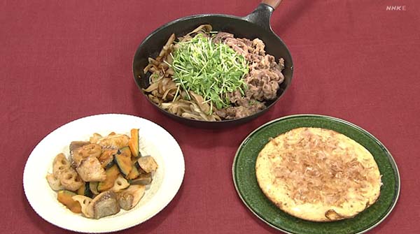 教えてくれたのは、「牛ごぼうと豆苗のすき焼き風・酢ぶりれんこん・梅長芋のふわふわ焼き」の3品。