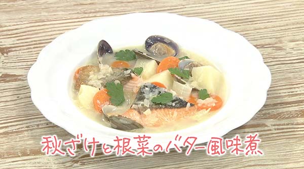 2025年11月11日放送の、きょうの料理「秋ざけと根菜のバター風味煮」の作り方をご紹介。