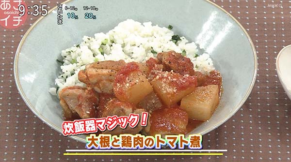 2025年11月18日、NHK「あさイチ」で紹介された、「大根と鶏肉のトマト煮」の作り方。