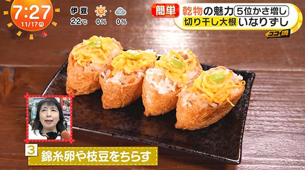 2025年11月17日放送のめざましテレビのココ調で放送された、「切り干し大根 いなりずしのレシピ」をご紹介。