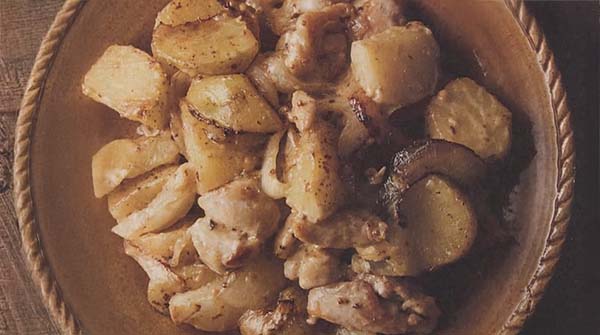 ボリューム満点で大満足できる一品です。マヨネーズと粒マスタード、中濃ソースを混ぜた濃厚な特製ソースが、ホクホクのジャガイモと鶏肉によく絡んで絶品!ガーリックの風味も効いていて食欲をそそるレシピです。