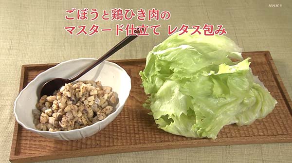 2025年11月26日放送のきょうの料理・香りで手軽にワンランクアップレシピ「ごぼうと鶏ひき肉のマスタード仕立てレタス包み」の作り方をご紹介。