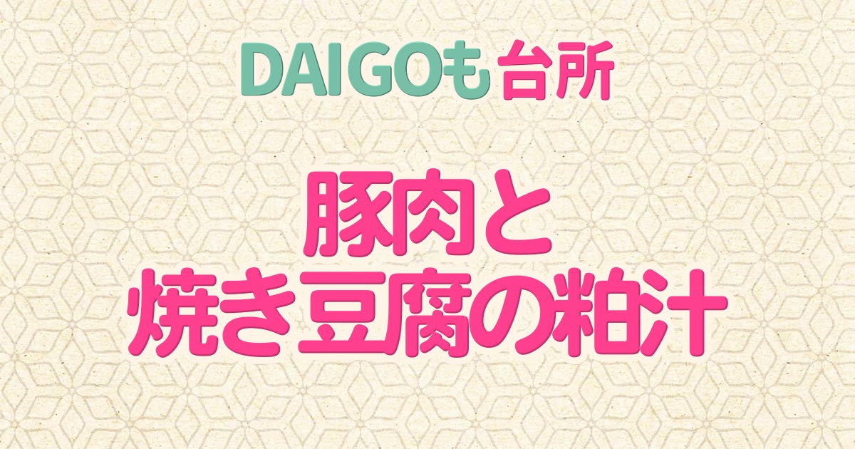 【DAIGOも台所】豚肉と焼き豆腐の粕汁のレシピ。S・I・O~先生のイチオシ