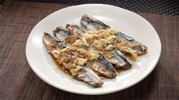 - さんまを三枚おろしにする。しょう油、酒、みりんを混ぜ合わせ、さんまを2〜3分つける。