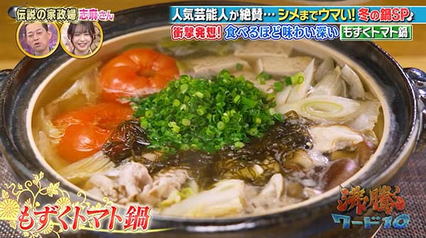 2025年11月28日放送の沸騰ワード10で放送の家政婦の志麻さんの「特製トマトもずく鍋のレシピ」をまとめてご紹介。