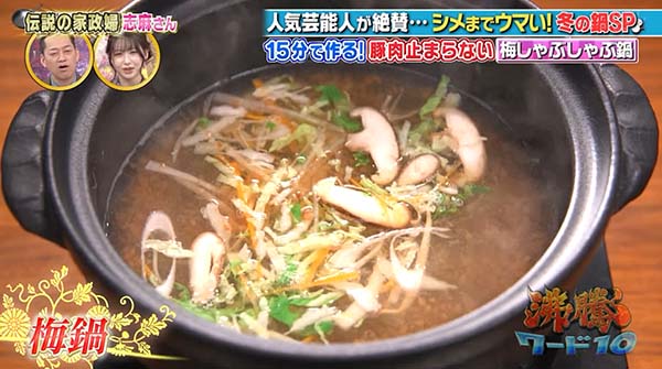 2025年11月28日放送の沸騰ワード10で放送の家政婦の志麻さんの「梅しゃぶしゃぶ鍋のレシピ」をまとめてご紹介。