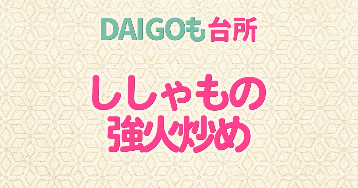 2025年12月3日のDAIGOも台所の「ししゃもの強火炒め・ししゃもの和風タルタル・ししゃものスパイシー漬け」の中から「ししゃもの強火炒め」の作り方をご紹介します。