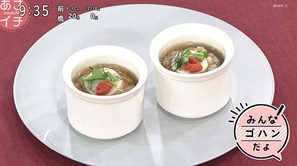 2025年12月4日、NHK「あさイチ」で紹介された、「体をいたわる冬の薬膳・中華風茶わん蒸し」の作り方。
