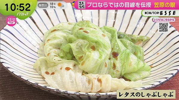 2025年12月2日、「ノンストップ」で紹介された「レタスのしゃぶしゃぶ」のレシピ。