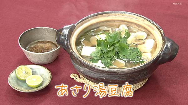 2025年12月3日放送のきょうの料理「あさり湯豆腐」のレシピをご紹介。