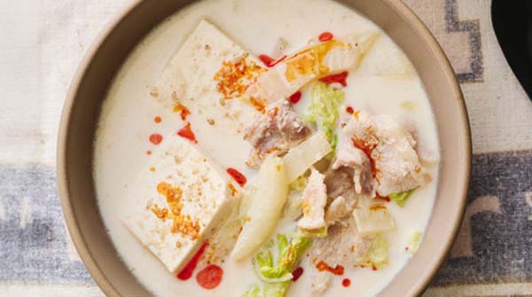 2025年12月12日、「ノンストップ」で紹介された、「豚バラ白菜のお豆腐ごま味噌スープ」のレシピ。
