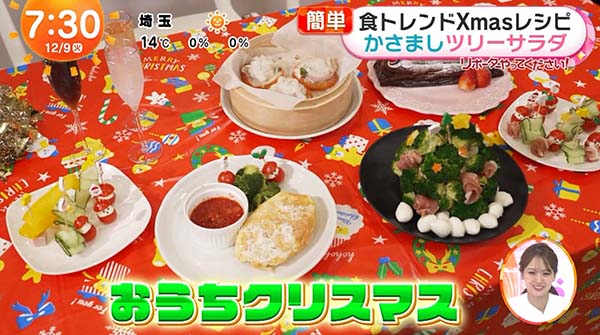 2025年12月9日放送のめざましテレビで放送された、「おうちXmas人気レシピ」をご紹介。