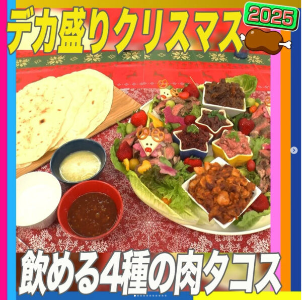 2025年12月12日のウワサのお客様で放送された、「コストコデカ盛りクリスマス2025の飲める4種の肉タコスのレシピ」をご紹介します。