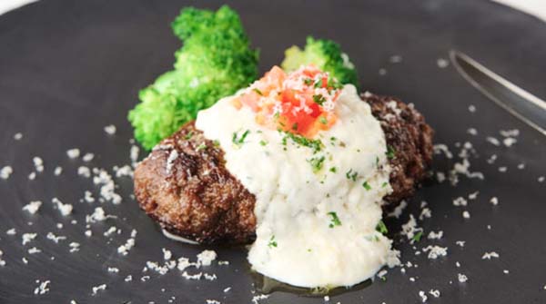 茂出木シェフが伝授するクリスマスバーグは、肉感をいかしたハンバーグと、すっきりした味わいのヨーグルトソースの相性が抜群!