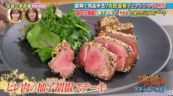2025年12月19日放送の沸騰ワード10で放送の家政婦の志麻さんの「コストコ食材のヒレ肉の柚子胡椒ステーキのレシピ」をご紹介。