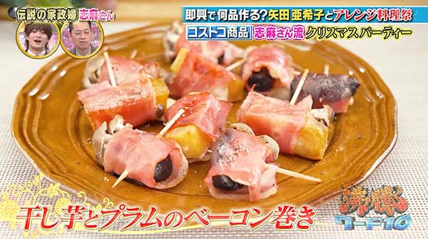 2025年12月19日放送の沸騰ワード10で放送の家政婦の志麻さんの「コストコ食材の干し芋とプラムのベーコン巻きのレシピ」をご紹介。
