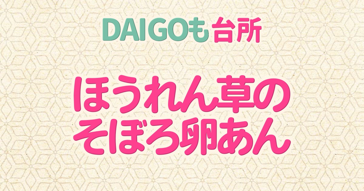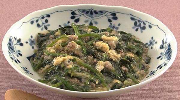 2025年12月24日のDAIGOも台所の「豚肉と香菜の炒めもの・ほうれん草のそぼろ卵あん・しらたきのきんぴら」の中から「ほうれん草のそぼろ卵あん」の作り方をご紹介します。
