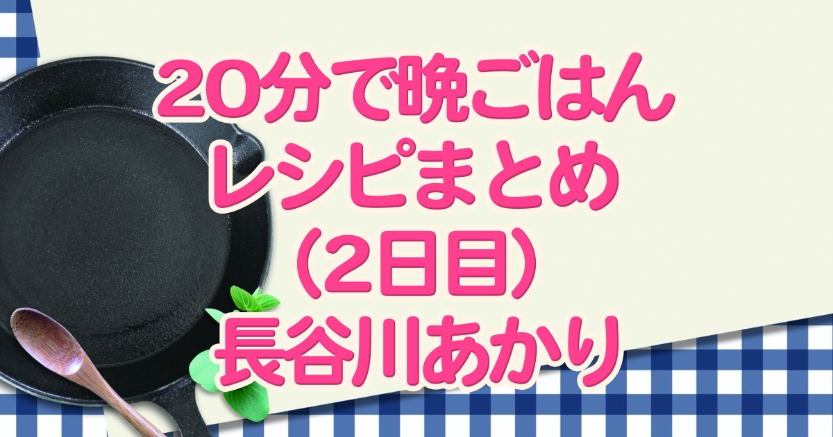【前日放送の「20分で晩ごはんのレシピまとめ(1日目)」はこちら】