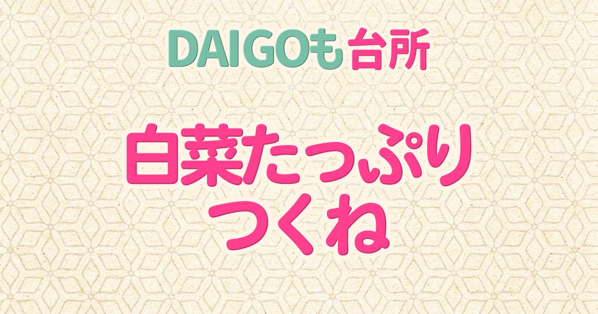 2026年1月9日のDAIGOも台所は山本ゆりさん考案「白菜たっぷりつくね」の作り方をご紹介!
