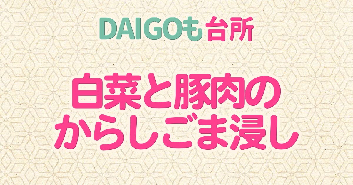 2026年1月13日のDAIGOも台所の「白菜と海老のとろっと煮・白菜と豚肉のからしごま浸し・鶏ミンチと白菜のスープ」の中から「白菜と豚肉のからしごま浸し」の作り方をご紹介します。