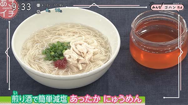 2026年1月13日、NHK「あさイチ」で紹介された、「煎り酒のにゅうめん」の作り方。