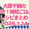 【きょうの料理】大原千鶴の幸せ!時短ごはんレシピまとめ。2026年1月14日