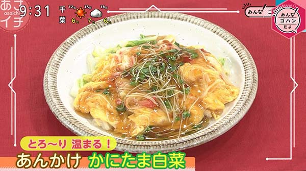 2026年1月26日、NHK「あさイチ」で紹介された、「あんかけかにたま白菜」の作り方。