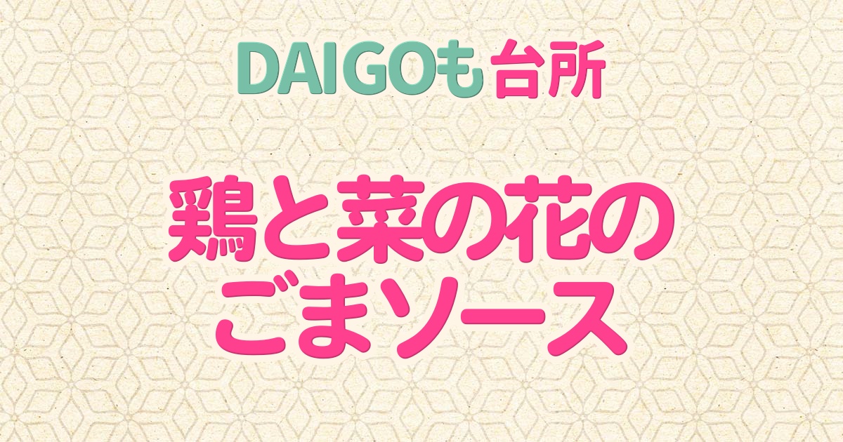 2026年1月26日のDAIGOも台所の「鶏と菜の花のごまソース・菜の花と豚肉のからし和え・厚揚げと菜の花の煮込み」の中から「鶏と菜の花のごまソース」の作り方をご紹介します。