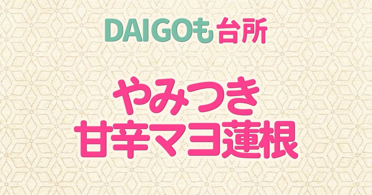 2026年1月30日のDAIGOも台所は山本ゆりさん考案「やみつき甘辛マヨ蓮根」の作り方をご紹介!